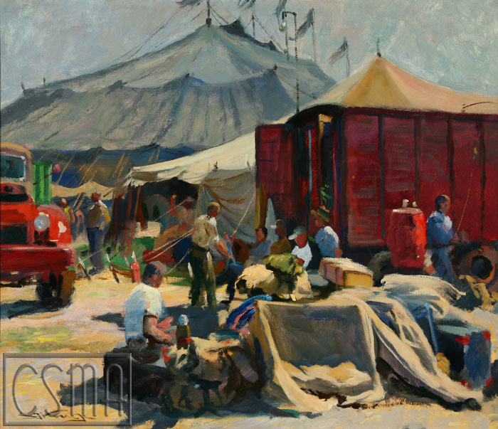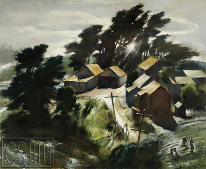 Emil Kosa Jr. was the career man and jack-of-all-trades artist of California Scene painting. Born the son of a Czechoslovakian artist in Paris, France, Kosa was trained in visual arts and music early in life. Kosa studied at the Academy of Fine Arts in Prague, the Ecole des Beaux Arts in Paris, and found something like home while attending the Chouinard Art Institute in Los Angeles and Otis Art Institute, where he began teaching in the late 1920s. He also maintained business in mural and decorative painting and the entertainment industry to support his family before taking on a thirty-five year career as a special effects artist for Twentieth Century Fox studios.