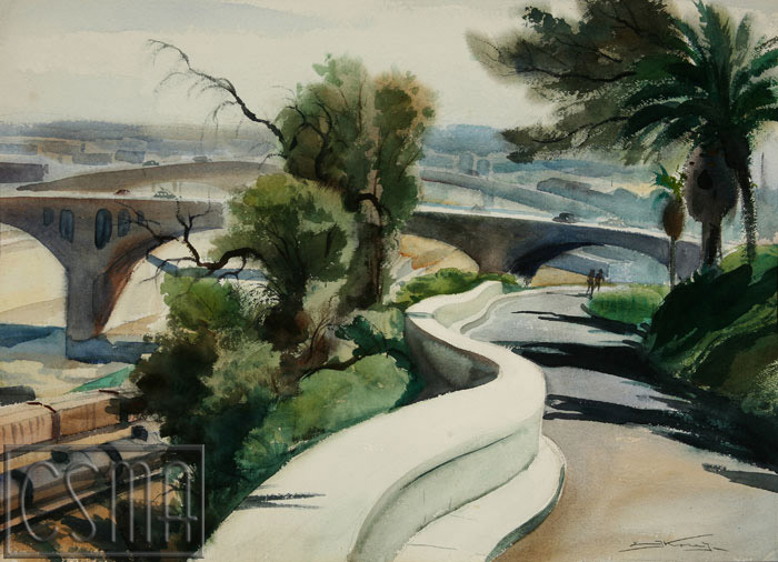 1930: Kosa became friends with Millard Sheets, began pursuing career in California Style watercolor painting and advocacy