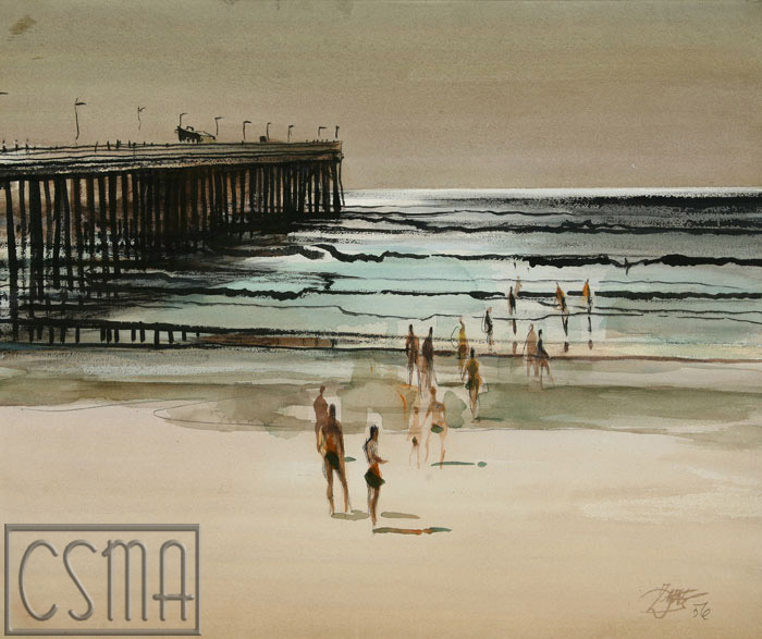 Zornes’ rise to prominence was swift, and by 1933, he was exhibiting his watercolors and receiving awards. His art production for the P.W.A.P. art Project led to a solo show at the Corocan Gallery of Art in Washington, D.C. One of his watercolors was selected by President and Mrs. Franklin D. Roosevelt to hang in the White House and an enormous amount of publicity followed. Within a very short amount of time, Zornes went from being a California watercolor student to being a nationally recognized artist. After the war, he traveled extensively, lived all across California, and decided to merge his two most favorite things: art and travel. He established traveling watercolor workshops that spanned all over the world including in China, Alaska, Mexico, Ireland, Italy, Spain, and Hawaii.