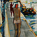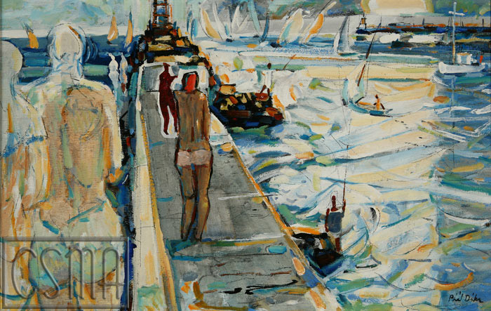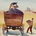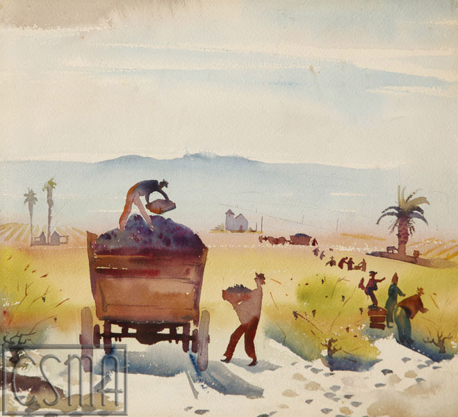 Always one to push boundaries, Dike can claim an impressive number of art world “firsts,” and was one of the most aesthetically modern of his American Scene peers. Within the California Scene Movement, Dike is well respected as one of the first artists to embrace and teach what became known as the California Style of watercolor painting. He was also the first artist to paint color into Disney animations, and incorporated calligraphy and geometric-abstractionist ideas into his artwork. He went on to complete altar pieces for churches, mosaic decorations, illustrations for national publications, and limited- edition lithographs and serigraphs. His versatility as an artist spoke greatly to his overall creative caliber.