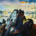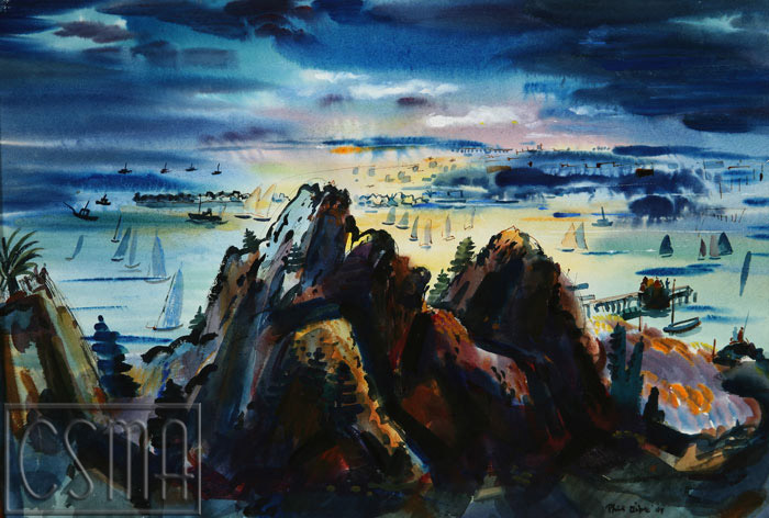 Phil Dike was known as the intellectual leader of California watercolor artists, and developed a sweeping, vanguard style that was influenced by the likes of more avant garde artists such as Georgia O'Keeffe, John Marin, and Charles Burchfield. Growing up in Redlands, CA, his grandmother was a painter and first exposed Dike to the arts. He began formal arts study in high school, and continued to hone his craft at the Chouinard Art Institute, Art Students League, and the American Academy of Fontainebleau. After studying extensively, he returned to teach at Chouinard, where he enjoyed a twenty-year tenure, and eventually moved on to serve as professor of art at Scripps College and Claremont Graduate School.