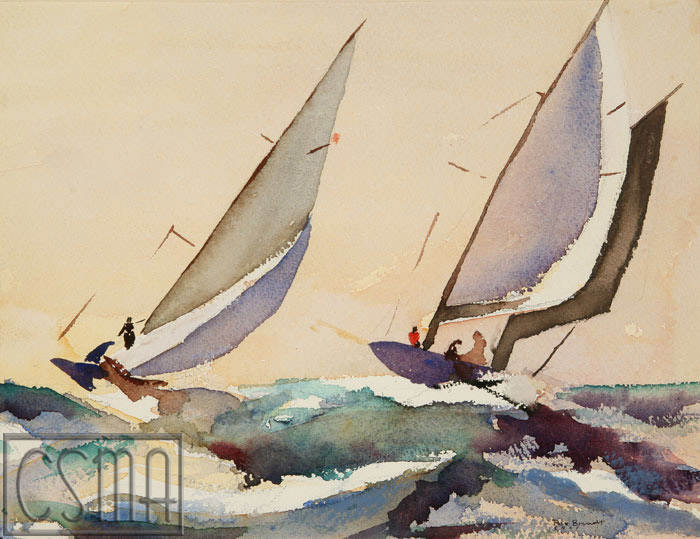 At the University of California at Berkeley, his precocious talent for painting took a modern turn while he was under the tutelage of Abstract Expressionist Hans Hofmann. Brandt developed a broad, splashy, semi-abstracted painting style that placed him with the forerunners of watercolor innovations in the 1930s and 1940s. Collector E. Gene Crain attested to Brandt’s talents proclaiming his artwork "as good as any work in a water-based medium that has ever been painted anywhere at any time." Leaders of the California Scene movement such as Millard Sheets and Phil Dike also recognized his abilities and welcomed him to join them in bringing national attention to regional California artists of the time. Newport Beach, CA was of special interest to him, and his picturesque seascapes exposed the stunning natural wonders of the area to new audiences a world over.